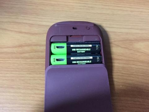 店頭で触った感じだとちょっとマウスボタンが押しにくかったのですが、机に置いて使うと