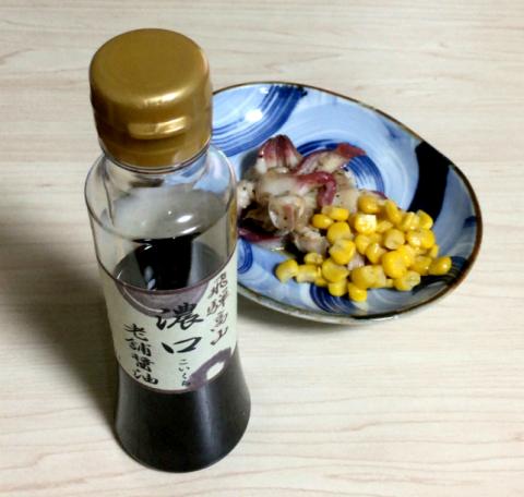 丁度、貰い物の「濃い口醤油」があったので、数滴垂らして戴きました。