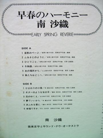 LPレコード 南沙織 「早春のハーモニー」 CBS/SONY SOLL26