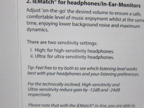 iEMatch®はヒスノイズを除去し、ダイナミックレンジを改善することによって、ヘッドフォンで音楽を聴く際の破滅的問題を解決します。IEM(インイヤーモニター)とヘッドフォンの大半は、ボリュームレベルが半分程度の時でさえうるさすぎるので、音楽を聴く楽しみが常に削がれてしまいます。信号経路にiEMatch®を入れれば、もうそのようなことはなくなります。