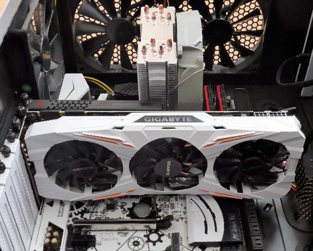 外観から云うと、GIGABYTE GV-N108TGAMING OC011GDの白ベースの筐体は、今回同時に購入したマザーボードのAsRock X370 Taichi白をモチーフにしたデザインとマッチするのです。