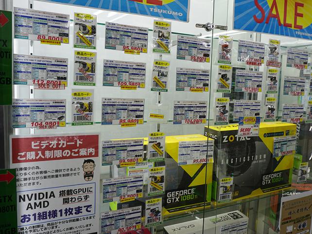 (GeFoce GTX1080搭載グラフィックボードは数多く在庫がありました)
