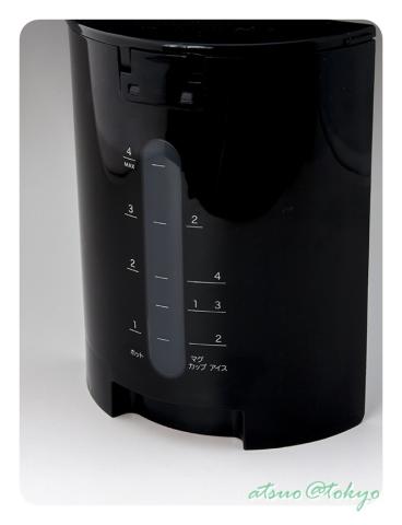 タンクにはコーヒーカップ、マグカップ、アイスコーヒー用の目盛りが振ってあります。