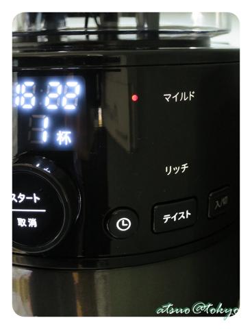 「テイスト」ボタンは蒸らし時間の設定で、ボタンを押す毎に[マイルド]と[リッチ]の左側のランプの点灯が切替ります。