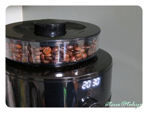 本体素材がプラ製でちょっと安っぽく見えますが、上部の豆容器からコーヒー豆が見え作動させると豆が減っていき挽かれている様子など見ていると高級そうに見えてきます(^^;