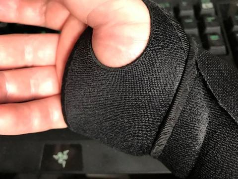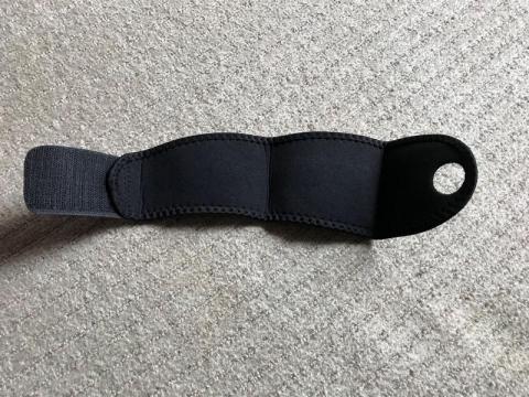 広げるとこんな感じです。装着法など詳細はAmazonの商品ページに記載されていますが、穴の部分に親指を通し、手首を包むように巻けばOKです。
