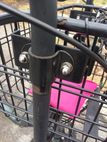 電動自転車用 Panasonic製 BE-ELMD03の幼児座席 OGK製HBC-006DXSを専用前後共用 フロント・リヤ兼用バスケットをPanasonic製NCB2041に交換しました。