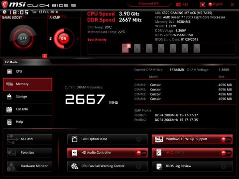 しかし4GBの片面実装モジュールだったおかげか4枚での2666MHz動作はあっさりOK。2800動作のプロファイルも保存されているメモリだがそちらは起動できなかった。