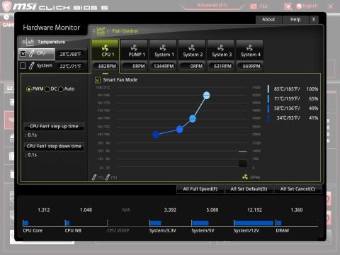 ファンコンの設定に関してはASRock・GIGABYTEはレスポンスが悪かったり操作性が微妙だったりするのだが、ASUSと今回のMSIはなかなか使いやすい。