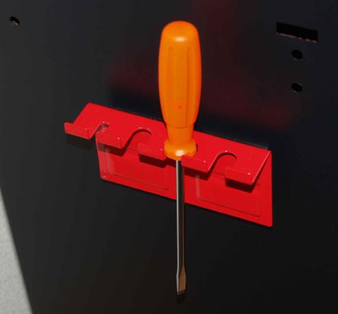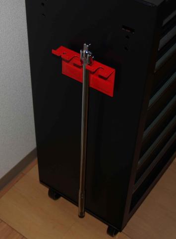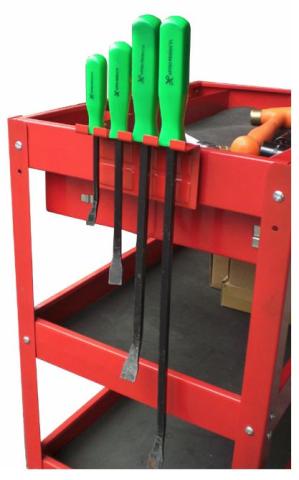 キャビネットに張ることで工具箱の横に工具を吊り下げるスペースを作るホルダーです