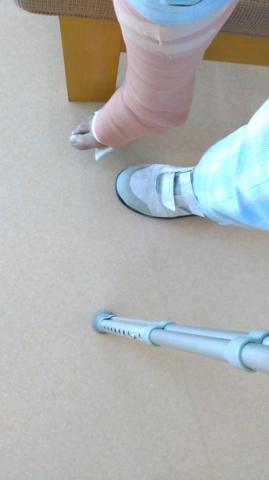 その後、ケガしたほうの足を床につけることができず車椅子での片足歩行。