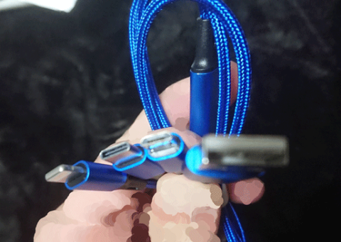Micro-USBケーブル、Type-Cケーブル、ライトニングケーブル(いらん)の3身一体のケーブル。