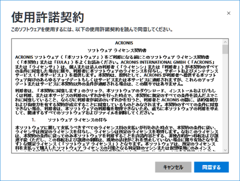 続きは「使用許諾契約」を「同意する」ボタンをクリックからです。