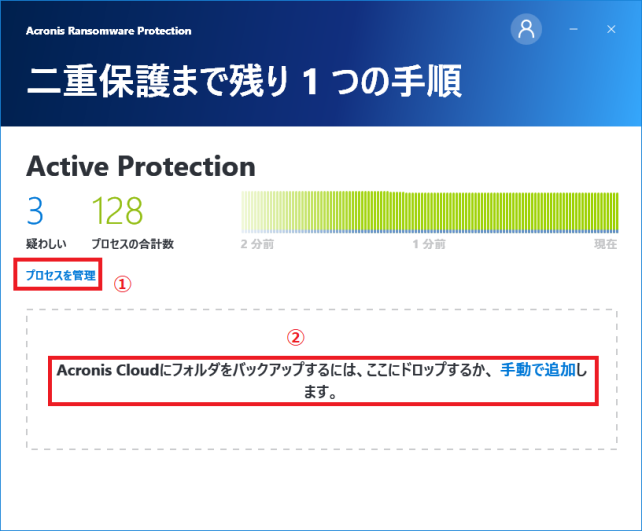 https://www.acronis.com/ja-jp/personal/free-data-protection/ から「AcronisProtectionSetup.exe」をダウンロードしてダブルクリックしてインストールをしようとしたがインストール出来ないでAcronis Ransomware Protectionが立ち上がってしまった。