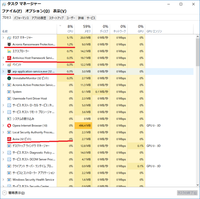 アイドル時にはウイルス対策ソフトの「Avira Free」よりも高いんです。