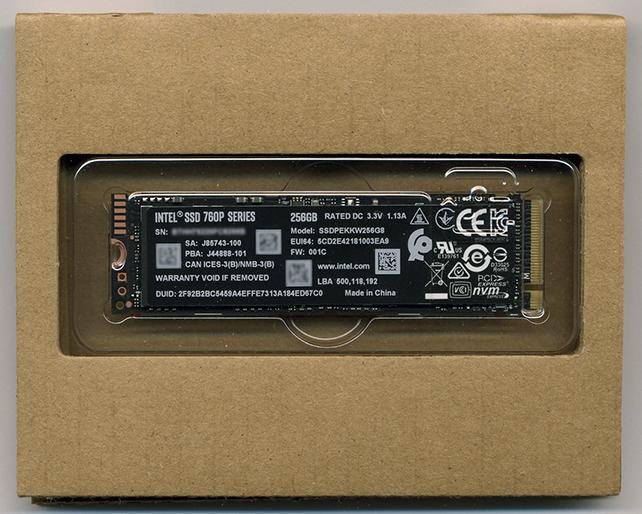 PCIe 3.0 x4 NVMe M.2タイプのインテル 760pシリーズのM.2 SSDです。