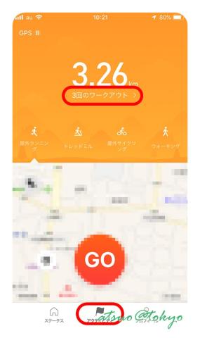左にスワイプ(右の画面を出す)とステータス、アクティビティと変わっていき、その画面でタップすると対応した画面が出てきます(階層を下がる)。