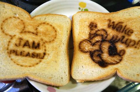 - たのしいミッキーとミニーのキャラクタ柄の焼き目が付きます。