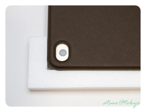 内側を開いてフタ側にコの字型のウレタンを縁に合わせて置き、iPadをウレタンに沿わせて置きます。