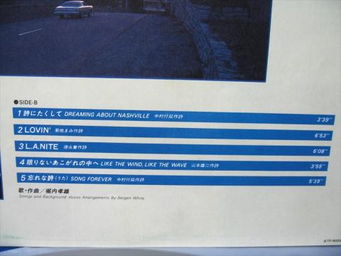 日本からは堀内、プロデューサー、他一名の名前が載っておりミュージシャンや他のスタッフは現地の人です 本場らしく曲もC&W調の伴奏が多い感じはします 全曲作曲は堀内孝雄です 編曲は不明... 「忘れな詩」と言う曲にSONG FOREVER という副題が付いています。