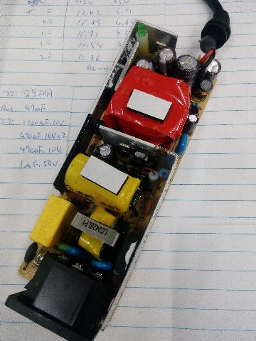 ただし手元には400Vのコンデンサがないのと、素人がACアダプターを分解してコンデンサ交換というのも危険すぎるので、解析はここまでにしたいと思います。