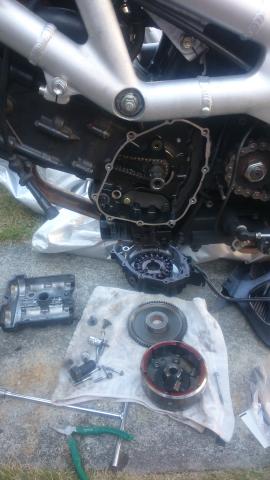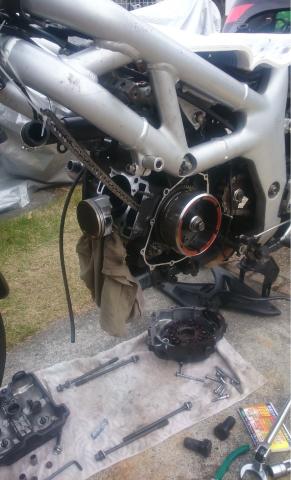 片方のカムチェーンの交換にフラホ外さないとダメな車種なのでつらいです…