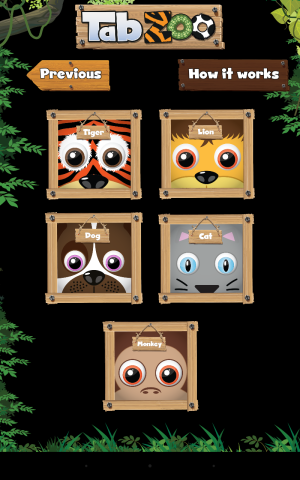 動物を選んで(トラ、ライオン、犬、猫、猿の5種類)