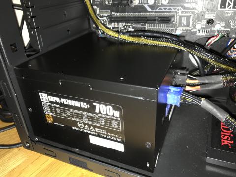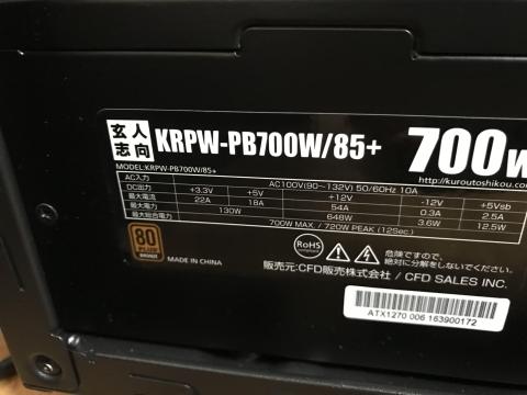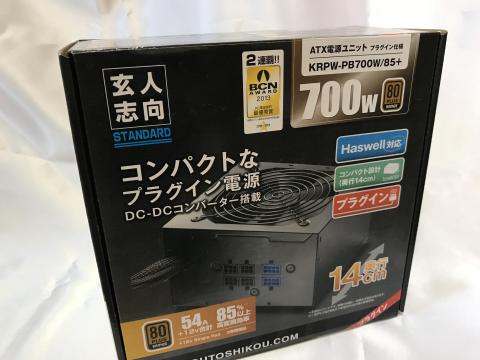 価格と容量、プラグイン対応ということで選びました。使用するグラボが補助電源が6ピンで消費電力(TDP)が120Wなので、少し余裕をもたせました。