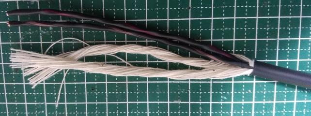 ちなみにこのケーブルはシースのすぐ内側は紙のシールド(?)なのでシースを引き抜くのがかなり容易です。引き抜いたら紙シールドを手でちぎってからハサミで綿糸を切ってあげるだけ。