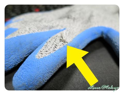 掌から指にかけてコーティングされている部分は特殊な溝が刻まれ、油が付着しても滑りにくい様になっています。