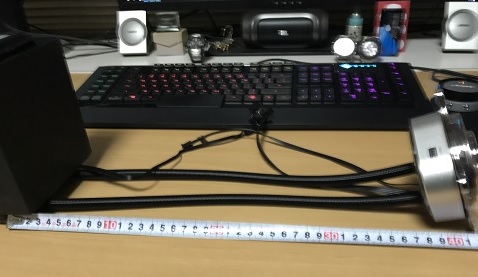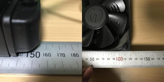 厚みはラジエーター30mm+ファン25mmの55mm。ファンの取り付けビスの頭も考慮して60mmは占領されそうです。ポンプユニットは80mm角ってところか。
