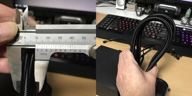 ブレードホースの直径は11mm程度。硬そうにも思えるが、ぐにゃりと曲げれるのである程度の曲げにも耐えられそうです。