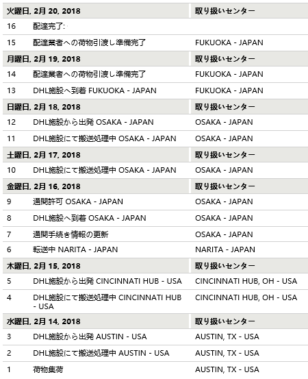 トラッキング番号がリンク先になっていてクリックしてもUPSのサイトへ飛ばされて追跡が出来ません。試しにDHLで番号検索すると出てきました。