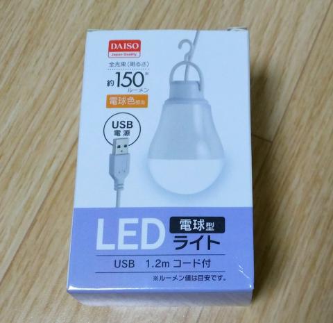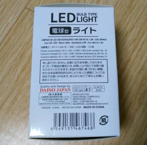 USBケーブルは1.2mあり、電球にはフックも付いている為にちょっとしたところにぶら下げることができます。モバイルバッテリーやAC-USBアダプタで、押し入れや、ベッドサイドなどを手軽に照らすには良さそうです。何せ100円ですし(*'ω'*)