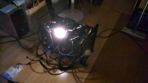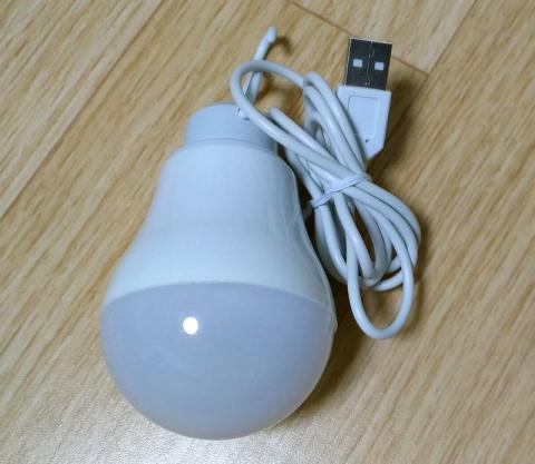 写真がうまく撮れなかったのですが、部屋全体を薄暗く照らすくらいの明るさはあります。電球型LEDライトはPCショップでも500円~1000円近くするので価格勝負ならアリでしょう。
