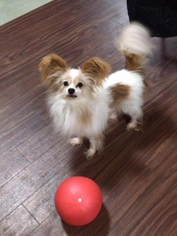 直径て26cmの小さなバランスボールですが、子供たちはもっぱら犬にぶつけています。