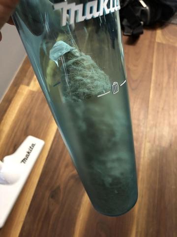 私が持っているのは強 : 37W / 標準 : 10Wとハイパワーな18V仕様のCL182FDを使用していますが、犬の毛でダストパックがあっという間にいっぱいになってしまいます。