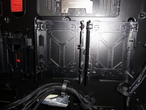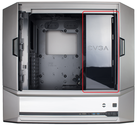 EVGAのロゴ付きの配線などを隠すパネルは本来ねじ止めだけど、アレンキーをぶち刺して仮止め