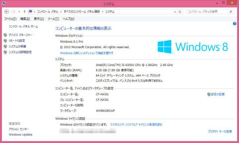 Panasonicのサポート情報によると、CF-NX3GFRCSがサポートするのはWindows 7 Professional (32bit/64bit)とWindows 8.1 Pro 64bitということで、今回はWindows 8.1 Pro 64bitをクリーンインストールしています。