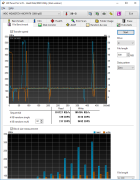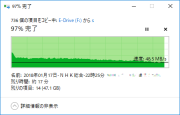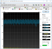 キャッシュ効果の影響もありそうな最初に比べて最後のほうは1/2以下。1/3近いところまで落ち込むが、(でも内周なら50ぐらいのものだろうし)いわゆるSMR病のひどいドライブはもっと悪くなるので、そんなひどくはないんじゃないかと。