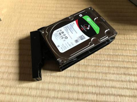 今回は同容量で比較的サイズが大きいSATA HDDが余っていなかったので、シングルドライブで容量を稼げる、Seagate ST8000VN0022(IronWolf 8TB)を1台だけ装着することにしました。