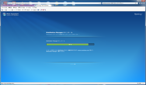HDDを装着したら、Synology製NASの標準OSである、DSMをインストールします。一応DS713+では、最新のDSM 6.1.5を利用可能です。
