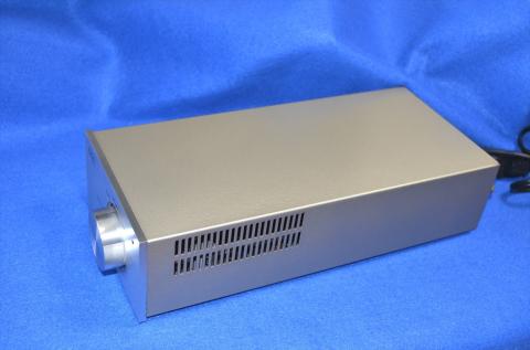 HA-500のツマミを右、左に切り替えると電源が入り右上のLEDが赤く点灯します 中央は電源切れてスルーポジションです