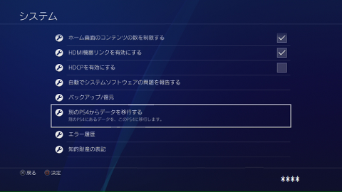 ※「いつも使う PS4」は、今までお使いの PS4® か新しい PS4® のどちらかだけに登録できます。 - ゲームやセーブデータ(任意)