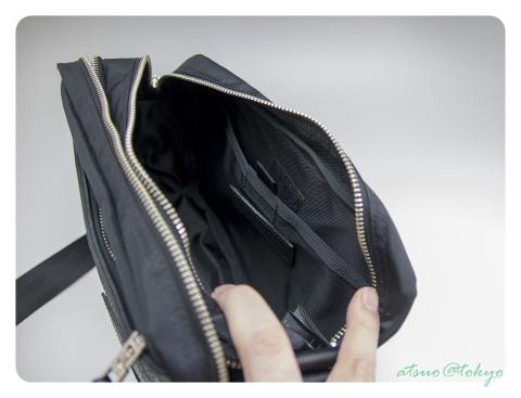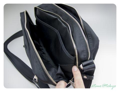 サイズは 250 x 200 x 90 mmで、ちょっと厚めのショルダーバッグです。