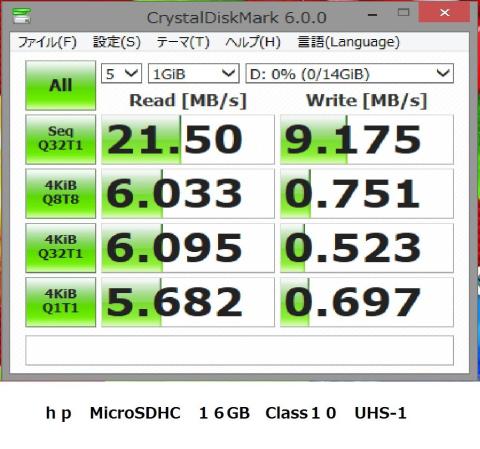 他のMicroSDHCカードの測定方法と同一条件で自己測定した値は