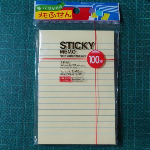 100円ショップのふせんは初めの頃、のりの部分が厚みをもっていたり、経年劣化したり、粘着力に不満があったりしましたが、最近はずいぶん改善されているように感じます。