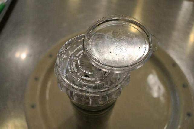 通常のミルとは違い、ミル部を上に向けて保管する仕組みなので、樹脂製の蓋が付きます。