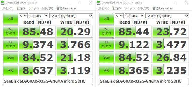 Crystal DiskMarkを走らせてみましたが,普通のClass10と余り変わらない感じです。