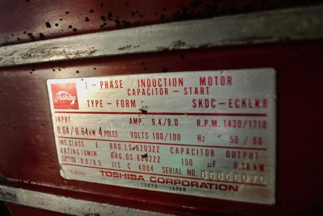 横向きに設置されたモーターは挽臼を直に回しますが、2枚ある挽臼の向かって右側にダイヤル式の